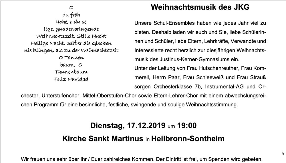 Einladung zur Weihnachtsmusik