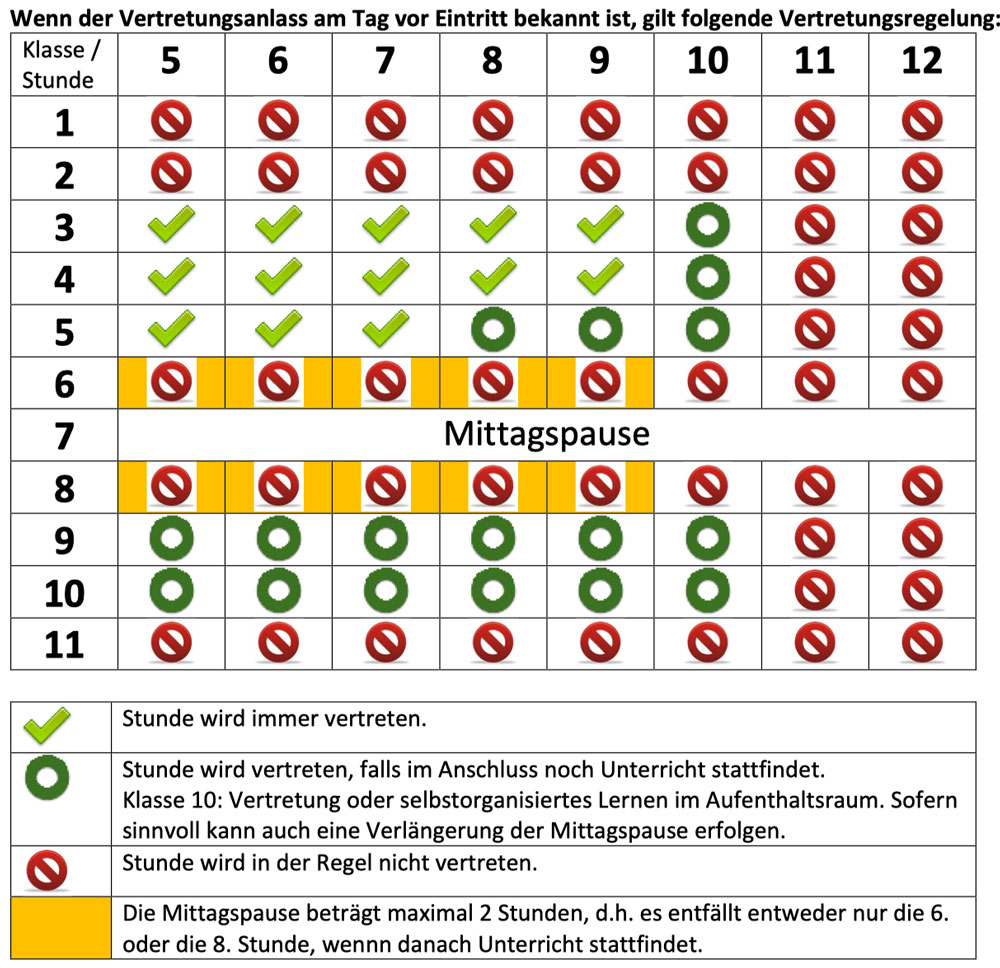 - Die Gesamtlehrerkonferenz und die Schulkonferenz haben einstimmig folgende Regelung für Vertretungsstunden beschlossen. Die Regelung wird ab sofort umgesetzt.