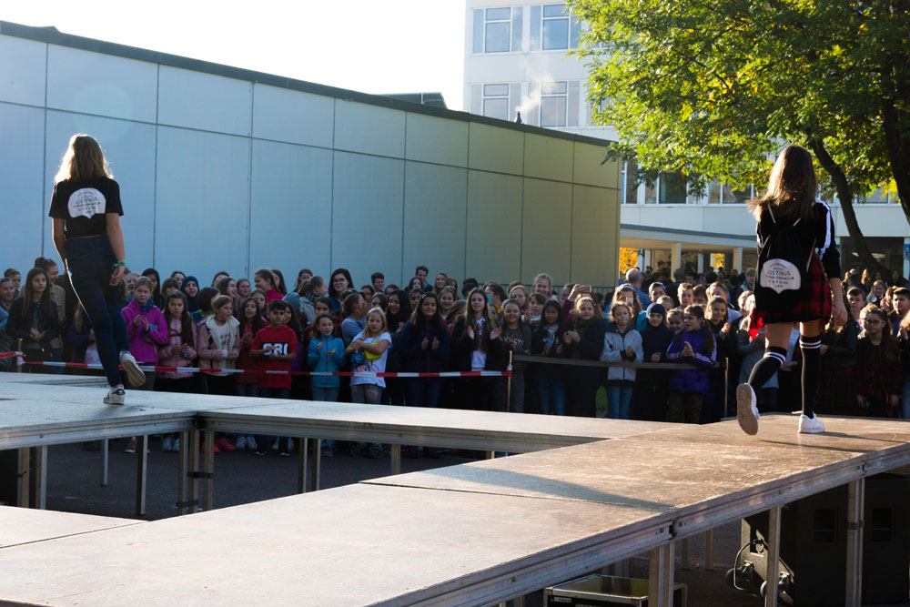 Heute hat die SMV in der großen Pause eine Modenschau veranstaltet. Vorgestellt wurde die JKG-Schulkleidung!